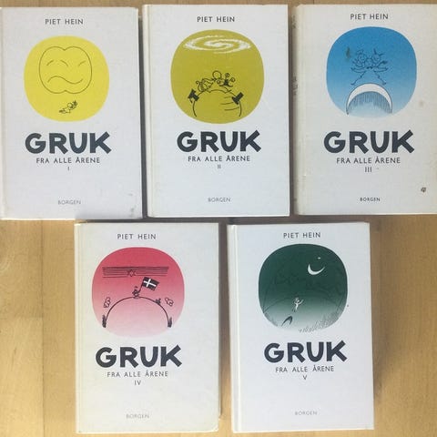 - Udvalgte gruk og andre genialiteter, 2001. Indeholder Gruk, Rebus rim, Notorius Jubelco, Prosagruk, Og så var der -. 96 sider. Illustreret. Billigbog udgivet af Ugebladet Søndag.