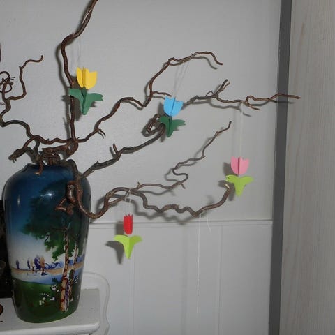 Andre samleobjekter, Flot tulipan med perler i enden, Lavet i tynd pap i forskellige ass farver sælges 1 stk koster 12 samt rabat ved fler stk antal 52 stk tilbage har jeg