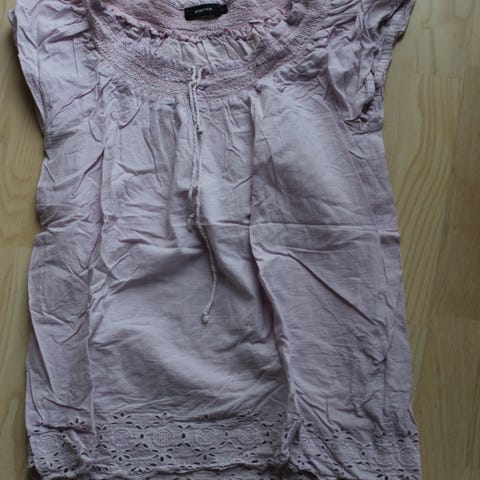 Andet, T-shirt, Paprika, str. L, Lilla, Bomuld, Ubrugt, T-shirt med snyde skjorte og korte puf ærmer.