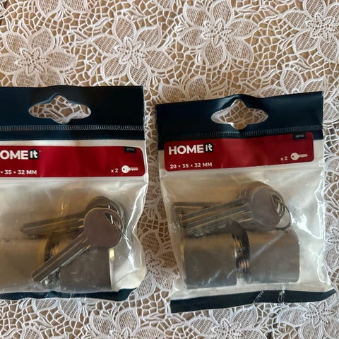 1 stk home-it cylinder 90kr,,,3 nøgler uåbnet