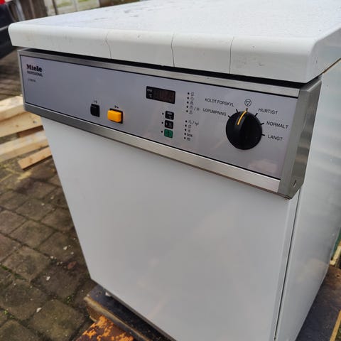 Miele PG8059, fritstående, b: 60 d: 60 h: 85, Professionel industriopvaskemaskine. Programmerbar styring. Hurtige opvasketider. Valgfrit sprog. Opfylder krav om minimum 80 grader. Opdateret til nyeste software. Mulighed for tilslutning af ekstern sæbedoseringsanlæg Miele Dos G60 eller G80. Fritstående eller indbygning. Kan ses i drift. Afhentning i Karup J, eller efter aftale afhentning i Hedehusene.