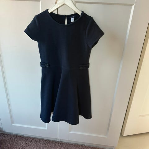Den er i 100% økologisk bomuld, og virkelig skøn kvalitet. Der er 3 knapper i nakken af kjolen.