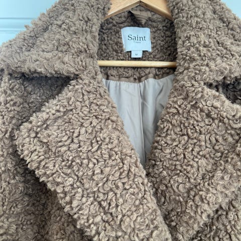 Andet, Frakke, Saint Tropez, str. L, Mørke lilla, Polyester-wool-acetata, Ubrugt, Frakke med knaplukning, 2lommer foran, bælte, slids bagpå.