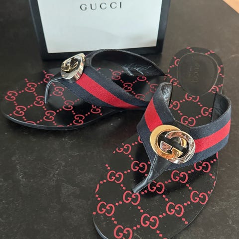 Sandaler, str. 40, Gucci, Mørkebrun, Mørkebrune Gucci sandaler med hæl i str. 40.