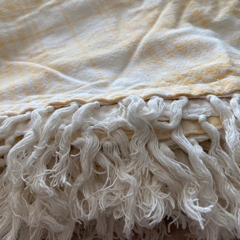 Rund sommerdug, Flot gul sommerdug til havebordet.