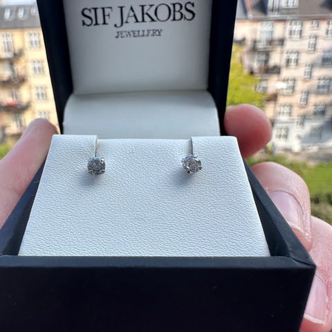 Sølv øreringe, fra Sif Jacobs i mærket Ellera Piccolo med sorte Zirkoner sten. Brugt et par gange står som nye og er renset. Ny pris 449,-