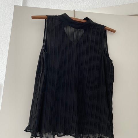 Næsten som ny, flot sort selskabs top med blomster i str. Small - den er gennemsigtig. Den er ikke brugt meget og ser ud som ny.