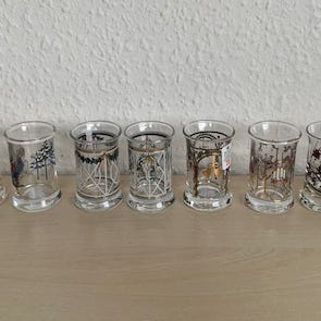 Glas, Dramglas, Holmegaard, Glas med dråbe i fod. 2 stk 11 cm høje og 6 cm i dia. Og 1 7 cm høj og 4,5 cm i dia. Samlet pris ialt