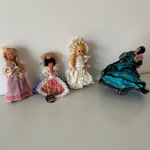 Dukker, Flamingo danser Spanien, dukke i nationaldragt på metalstiver 20 cm høj. (515)