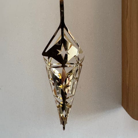 Selve kræmmerhuset er ca 11 cm lang (uden pynt og kæde/ophæng)