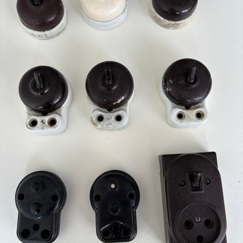 Diverse gl. elkomponenter, bakelit, Giv et bud.