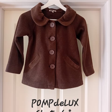 Trøje, Fleecetrøje, POMPdeLUX, str. 98, Super lækker blød fleece trøje med hætte i mørk grøn med fine detaljer, bla med fint får på maven, skrå lynlås så åbning ved hovedet kan justeres.