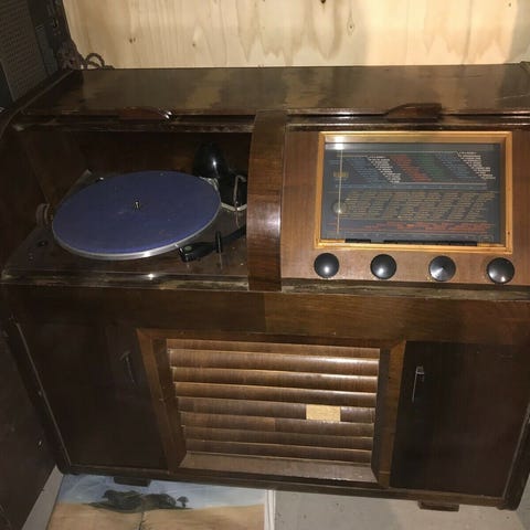 Radio, Sonofon, Sonofon radio/grammofon skab sælges. Er ikke testet hvorfor det sælges som defekt. Radio er model Queen. Grammofonen er med pladeskifter og af mærket Gerrard. Kabinet rimeligt, få finerskader, overplade skal lakeres. Fletværk skal repareres. Kan ikke sendes, hvorfor den skal afhentes i Gilleleje. Betaling MobilePay.