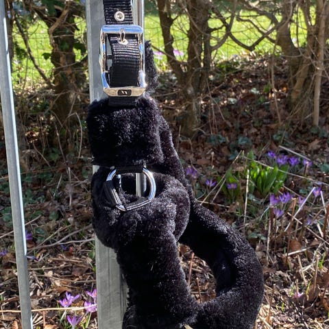 Grime, Det fedeste sæt fra Eskadron i hvidt blødt materiale ( a la pels) med Velcro. Kan bruges til både grime og hovedtøj. Næse og nakke. Svedtransporterende og meget beskyttende for ponyen. Den lille ( 25 cm) kostede 160kr og den store ( 42 cm) kostede 235kr. De laves desværre ikke mere. De er utrolige holdbare og ser ud som helt nye. Et helt sæt sælges for 150kr. Vi har to sæt. Befinder sig i Silkeborg.