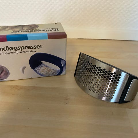 Hvidløgspresser, Beige plast 14,5 cm lang. (1373)