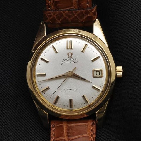 Brugt Omega Seamaster vintage ca. år 1970-1975 stål med guld duble kasse, stand 7/10 mekanisk automatic, chronograph. Virker meget fint kommer med en helt ny kraftig krokodille rem. Værk 1040, uret med 20 microm guld.