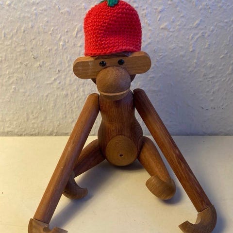 Studenterhue , Kay Bojesen, Kay Bojesen studenterhue (rød) til lille Kay Bojesen abe (str. 20 cm). Ø: 3,5 cm. Aldrig brugt. I original emballage. Nypris 149,95. Sælges for