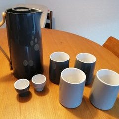 2 superfine designer keramikkrus med underkop/låg fra Stelton serien Theo i sort.