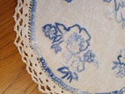 Råhvid bund med blåt broderi.