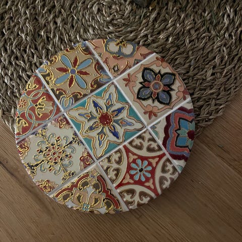 Bordskåner, ved ikke hvilket mærke, Fineste lille runde bordskåner. Læg den under vasen eller kaffekoppen på sofabordet f.eks.