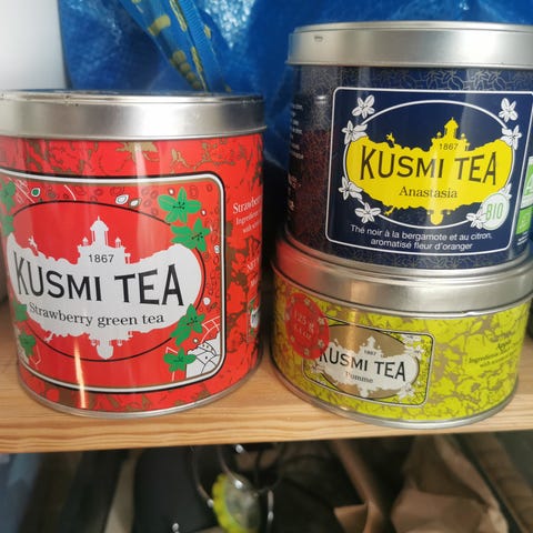 Dåser, dåser, Fine røde te dåser fra Kusmi. i forskellige størrelser. Pris pr. st.: