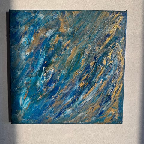 Oliemaleri, Louis Grynderup, motiv: Abstrakt, stil: Abstrakt, b: 60 h: 86, Kunstner fra Talentlinien, har udstillet på Aros, 29 år, multimediedesigner, grafiker og kunstner. Signeres. Nyindrammet, svæveramme. Malet 2020. Statement om genbrug og recycling.