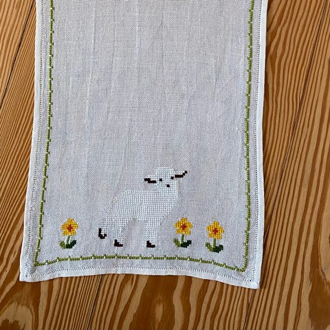 Søgeord: Hækling, hækleri, Påsketing, Bordpynt, Hæklet løber