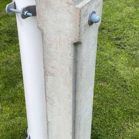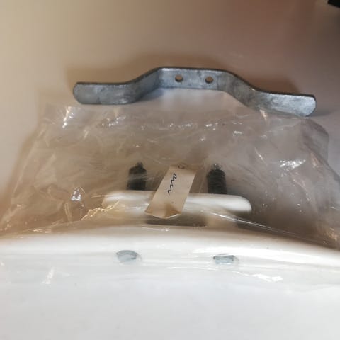 Vægholder til flagstang eller juletræ, 15 x 15 cm. vægplade. 80 cm. arm. Ø 6 cm. rør til flagstang eller juletræ. 3 stk. spændeskruer på hver holder. Har 3 stk. 300 kr. pr. stk. 750 kr. samlet.