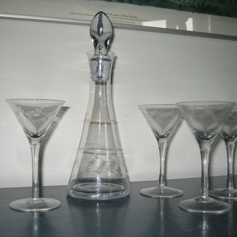 Der er slebet vindrueklasser på glas og karaffel.