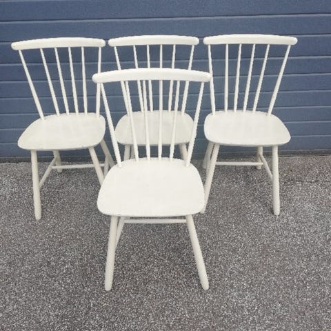 Køkkenstol, Bøgetræs stole pindestole, 4 kraftige pindestole bøgetræ , sædehøjde 45 cm og sædebredde 44 cm .prisen er pr stk