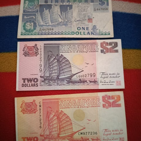Asien, sedler, 2 Dollar, Singapore