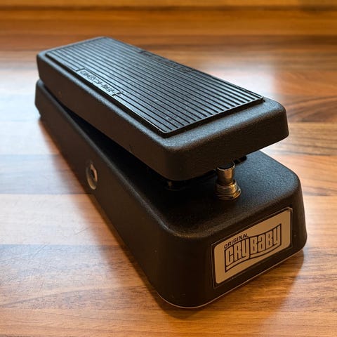 Wah Pedal, Jim Dunlop GCB-95F Cry Baby Classic, Klassisk Cry Baby med autentisk sound grundet fasel spolen, en klar lydmæssig opgradering i forhold til standard Cry Baby’en. Fabriksny og ubrugt, dog uden gummifødder og batterilager.