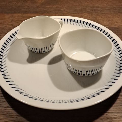 Porcelæn, SUKKERSKÅL - FLØDEKANDE - LILLE TALLERKEN, LYNGBY TREND, SUKKERSKÅL + FLØDEKANDE + LILLE ASYMETRISK TALLERKEN