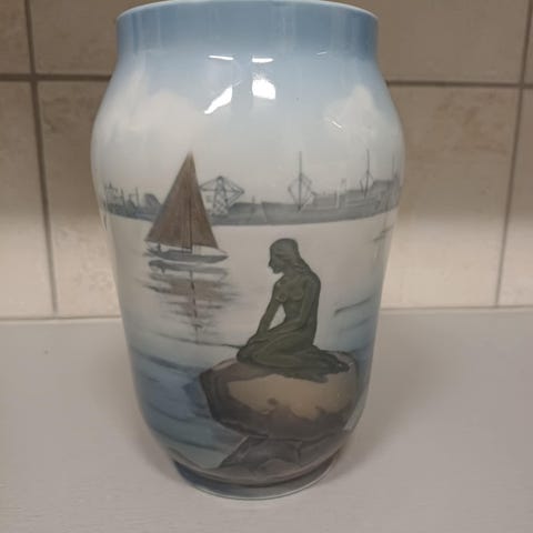 Porcelæn, Vase, Royal Copenhagen, Royal Copenhagen vase med Den lille havfrue Langelinie nr. 4463.
