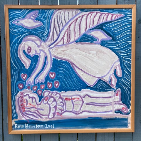 Akrylmaleri, Ruth holmbom, motiv: Blomster/Have