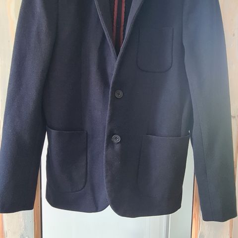 Bukser er størrelse 46 i livsmål (EU) og habitjakken er slimfit medium.