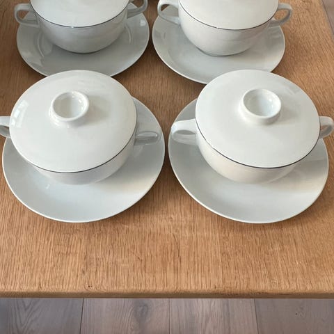 Porcelæn, Blå Kant Bouilln kop med låg, Blå kant, Blå Kant Bouillon kop med låg nr 3071