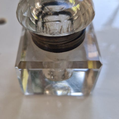 Fyldepen, Blækhus, Yndigt fransk vintage blækhus & fyldepen holder i porcelæn. Dekoreret med guld.
