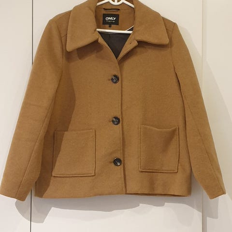Andet, JUNGE, str. 48, Camel, 100% poliester, Næsten som ny, En rigtig flot frakke med mange detaljer, det kan ikke ses den har været brugt,