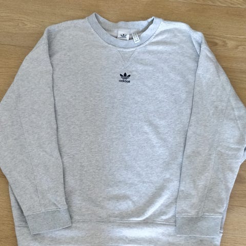 Sweatshirt, Adidas , str. 46, Grå og sort m. hvide striber, Polyester , Næsten som ny, Fin Adidas sweatshirt i storpigestørrelse.