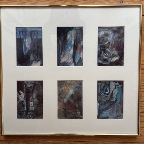 Collage, Relief:LANDSCAPE tredimentionelt på stof i glasramme 48x33cm fast pris kr295. Vkt