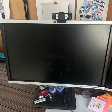 HP, fladskærm, LA2405wg, 24 tommer, God, 2 identiske skærme til salg, basis for perfekt dual-screen skrivebord.