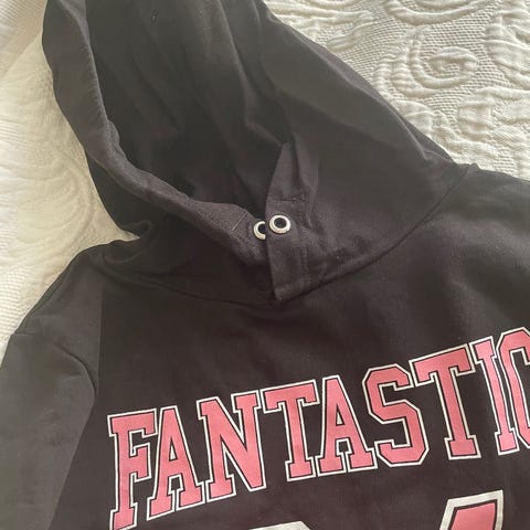 Bluse, Se billede, H&M, str. 146, Sød lyserød bluse med logo og lidt længere bagtil end foran.