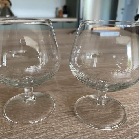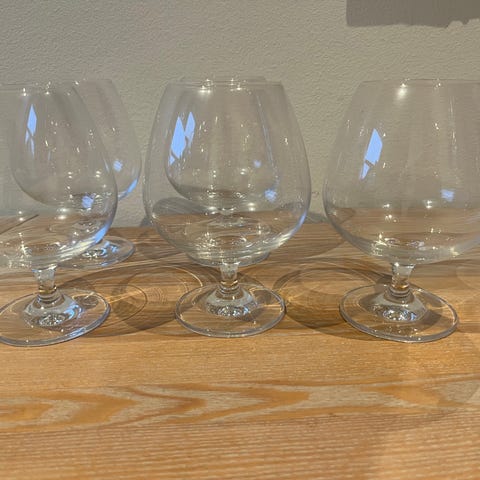 6 fejlfri cognac-glas sælges samlet for ialt 30 kr.
