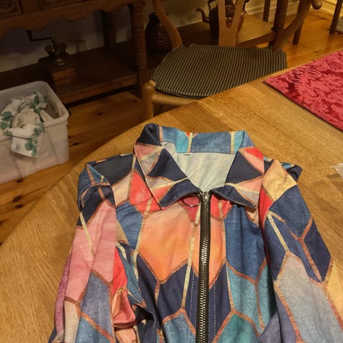 Bluse, Miss Line, str. One size, flerfarvet, Polyester-Elastan, Ubrugt, Top lang med kort ærme og rhinestone på forsiden.