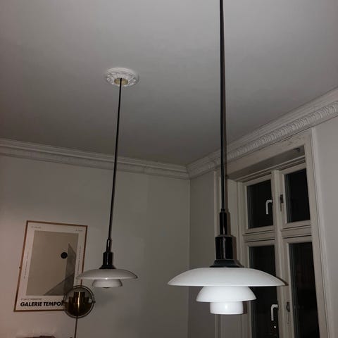 Pendel, ANTIK PENDEL FRA 1920, Ældgammel PENDEL(Måske PH) med fejlfrit glas.36 cm glasskærm og underskærm , begge skærme i hvidt opalglas originale fra tiden .
