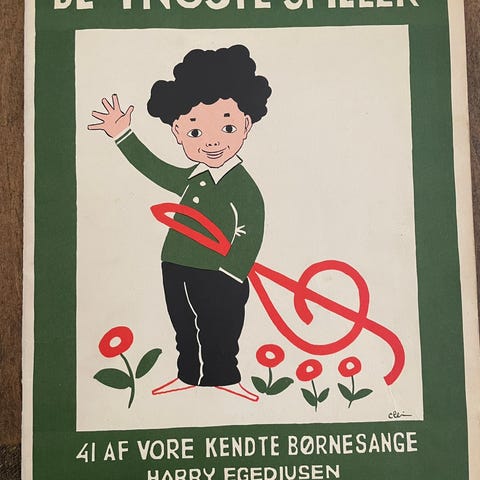 De yngste spiller - 41 af vore kendte børnesange udvalgt af Harry Egediusen. Fra Wilhelm Hansens nodestik og tryk, København 1957. På 24 sider.