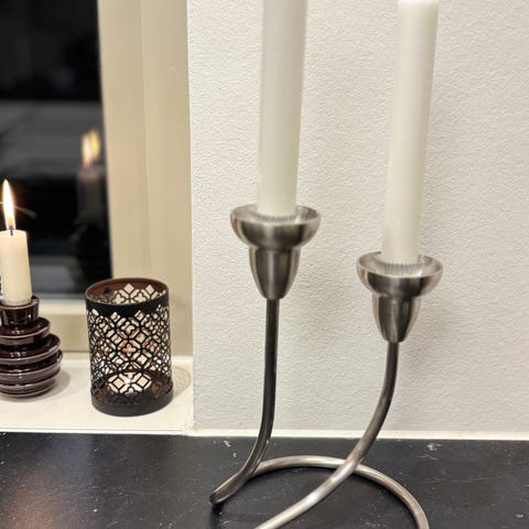 Lysestage - dobbelt, Georg Jensen Swing, Minimal brugsslidtage, der er en lille mørk plet inde ved det ene lys (se billede 2), men ses næsten ikke når der er lys i - derfor prisen