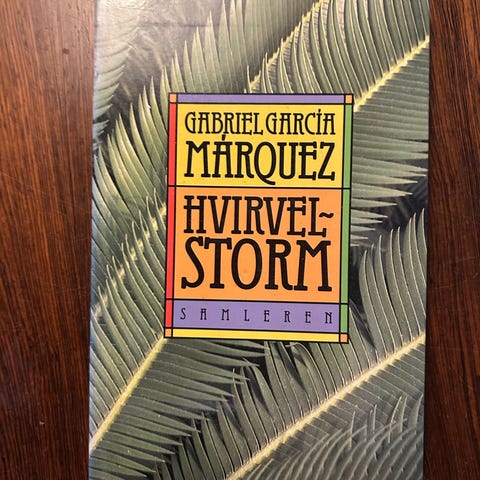 Hvirvelstorm, Gabriel García Márquez, genre: roman, Mens begravelsen forberedes, mindes tre mennesker den afdøde og den mystik, der omgav ham og gjorde ham forhadt i den lille, gudsforladte latinamerikanske flække.