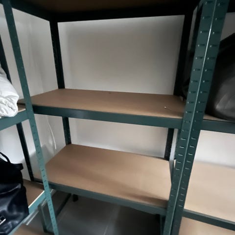 Er købt hos Det Mondæne Skur på Gl. Kongevej og ikke brugt meget. Der er en revne i den øverste højre klinke på den lille hylde (se billede nr. fire).